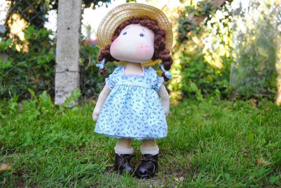Muñeca de trapo romántica, muñeca confeccionada en tela de algodón , cara pintada con pintura para tela , pelo sintético, pies manos, culete y rodillas esculpidas. Esta muñeca la hice especialmente ...
