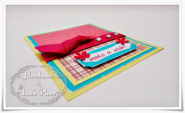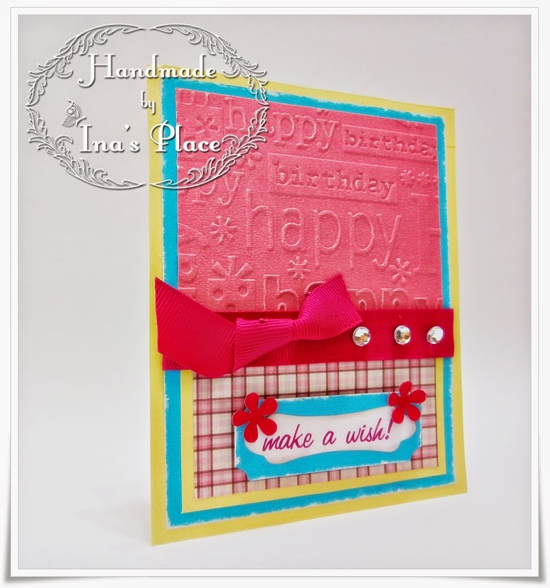 Esta hermosa tarjeta de felicitación que les muestro la realicé para participar en el grupo de Facebook Club de Scrappers en Acción donde debíamos utilizar los colores rosa,turquesa y amarillo además de brillantes y flores.El resultado de mi propuesta es éste diseño y en el cual también me inspiré y elaboré la mini bolsa para colocar mini chocolates o galletitas y asi agradar mucho más a la destinataria del presente.