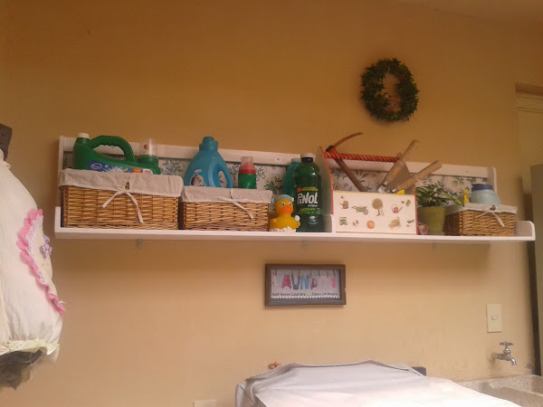 Finalmente, coloqué los productos de limpieza, un cuadrito que dice LAUNDRY y una coronita de hojas de hidra que ya tenía desde hace algunos años. Me gustó el resultado, pero faltaba algo más...