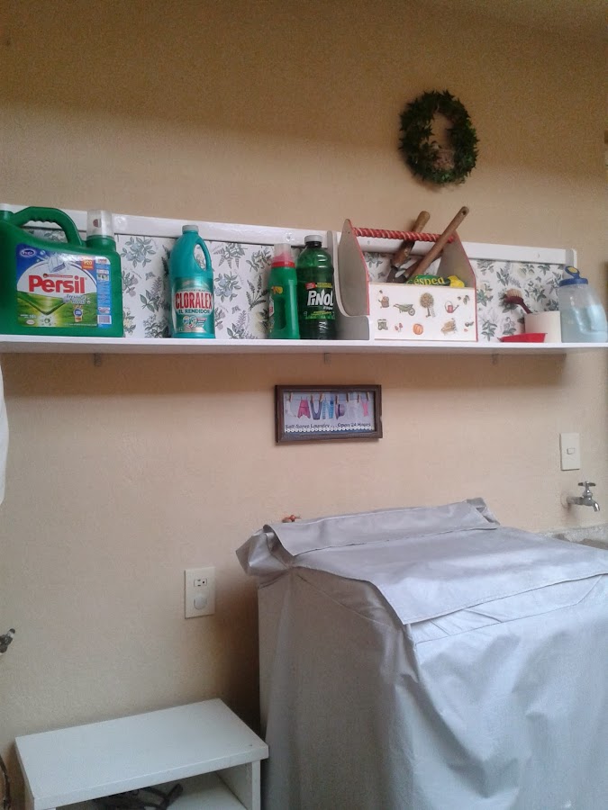 La lavandería se veía así, sin ningún elemento de decoración, simple y nada útil. Comencé por retocar la pintura de la pared, pero necesitaba algo más, así que la solución fue una repisa para un resultado práctico y bonito a la vez.