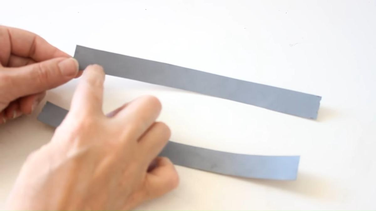 para hacer la manija de esta maleta voy a utilizar un cartón fino que voy a pintar con el mismo color de pintura gris voy a cortar dos tiras de dos centímetros por 20 y las voy a pegar para que quede prolija de ambos lados