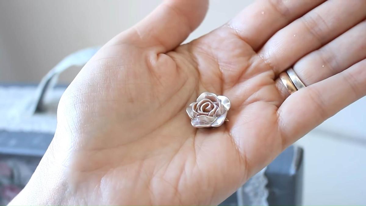 para pegar la manija antes le voy a hacer unos pequeños dobleces a cada extremo para que puedan asentar sobre la caja la voy a pegar con silicona y a colocarle una de estas rositas a cada lado