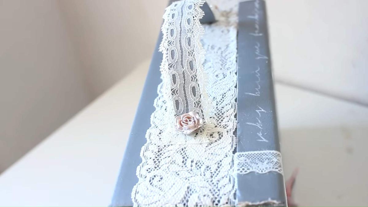 también puede pegar en los laterales una puntilla más fina tratando de dejar la misma distancia de los bordes a ambos lados