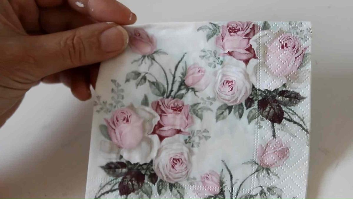 esta es una de las servilletas que voy a utilizar y también le voy a aplicar estas rosas tan bonitas