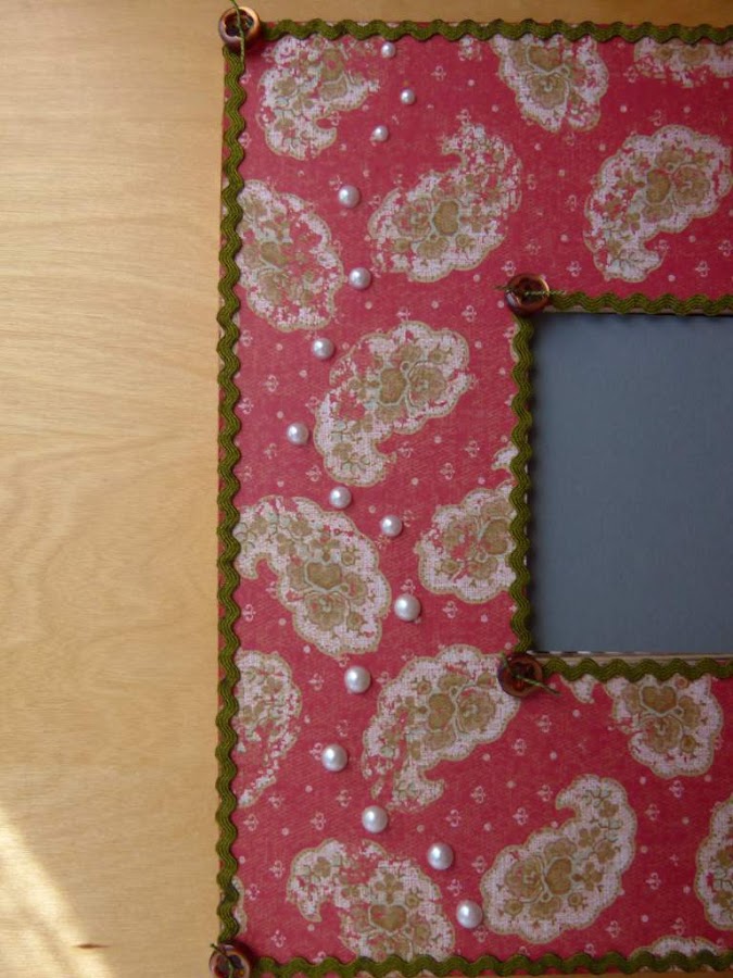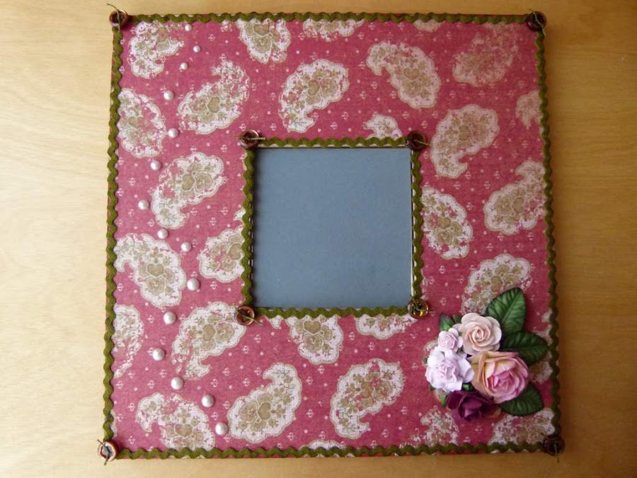 He usado un papel de K&Company maravilloso, con un color burdeos y un estampado precioso. No quería recargarlo demasiado, así que los adornos son sencillos. Cinta zig zag verde, unas flores y unas perlas. Y mucho cariño a la hora de hacerlo. Espero que le guste:
