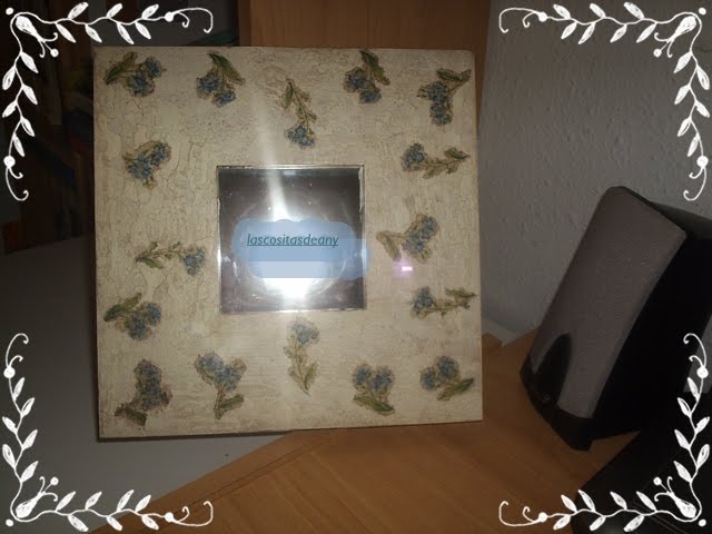 este se lo regale a mi hermana para el campo,esta craquelado y envejecido con cera y betun de judea,las flores son muy pequeñitas y estan recortadas con las manos,me gusta mas que con la tijera.....................ahora viendo la foto,veo que las flores salen muy feas,pero os prometo que visto en persona no se ven asi,sera por la maquina de fotos