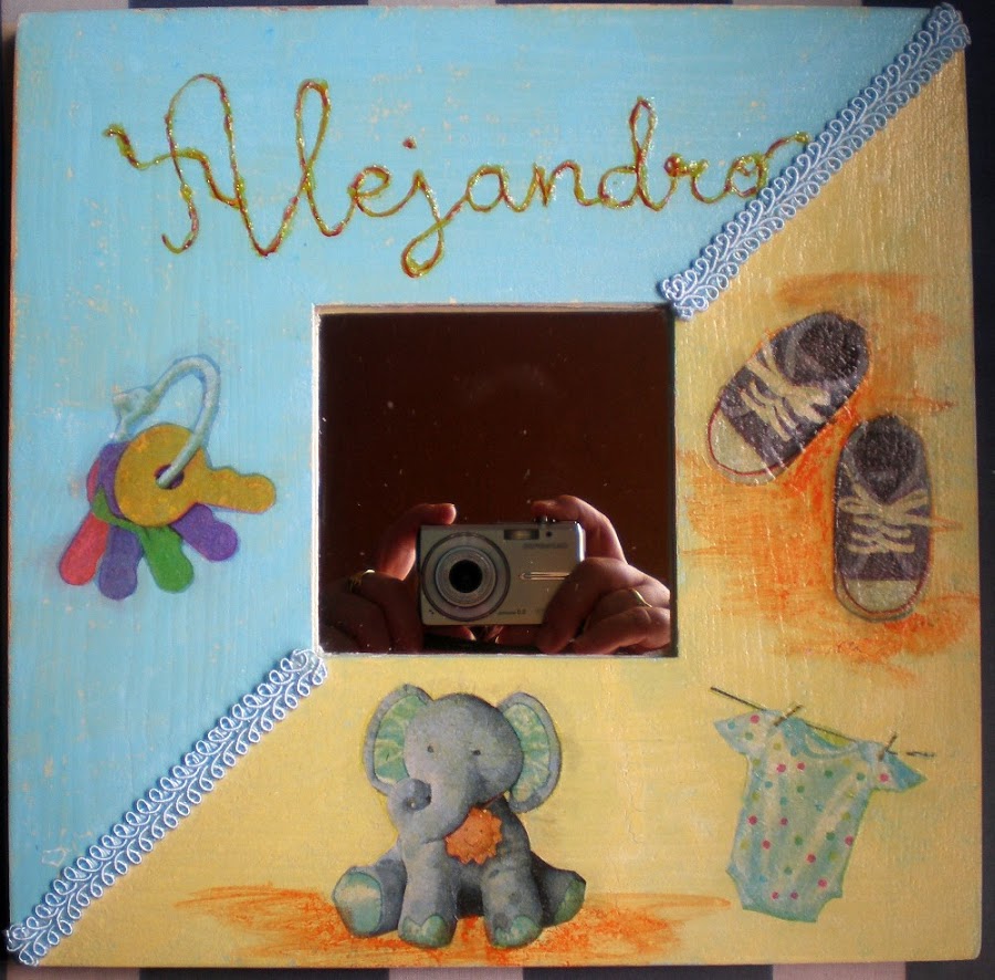 Este malma hace juego con la cajita de las monster , os aclaro , que los malmas son marcos de madera con espejo, por si le interesa a alguien , mide 26 X 26 y el espejito 10 X 10 ...