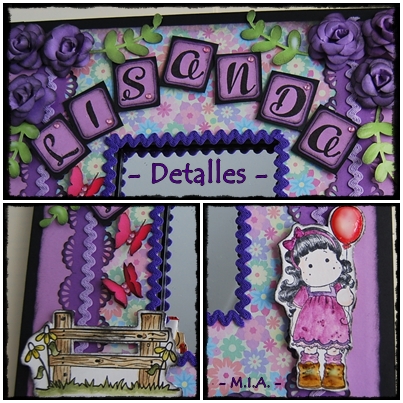 El papel base es de la colecciónK&C Company y jugué con cartulina lila y de ondulina en dos tonos para decorar.
