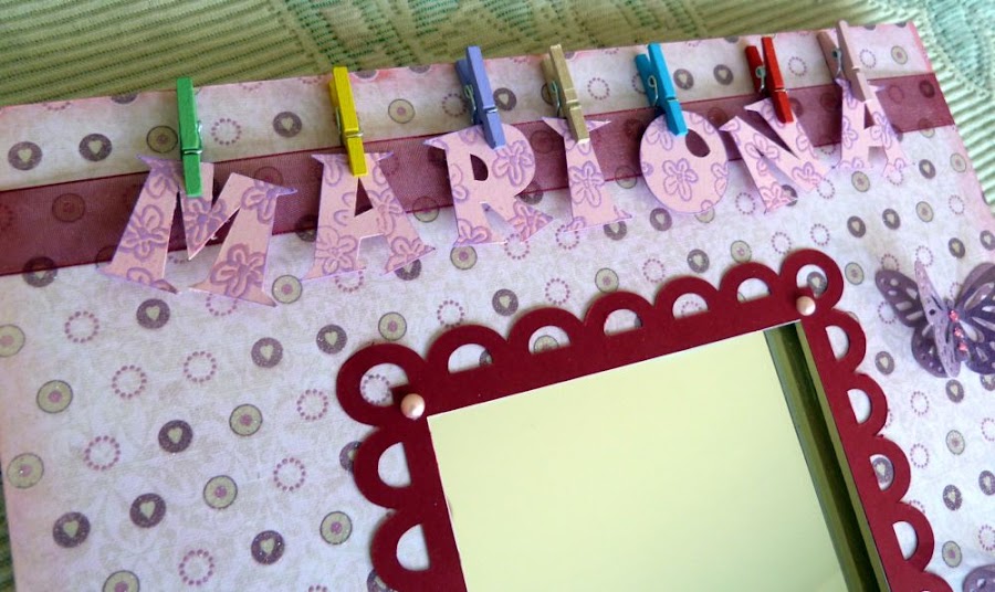 Un boton de madera, mariposas de Martha Stewart y brillantitos varios acaban de decorarlo.