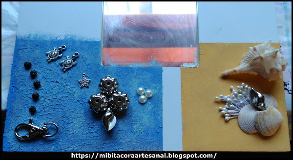 charms en metal marinos (tortugas, estrella y caracolas),