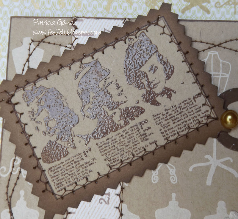 Lleva estampado el sello Tim Holtz VOGUE Stampers Anonimus (adoro este sello!)