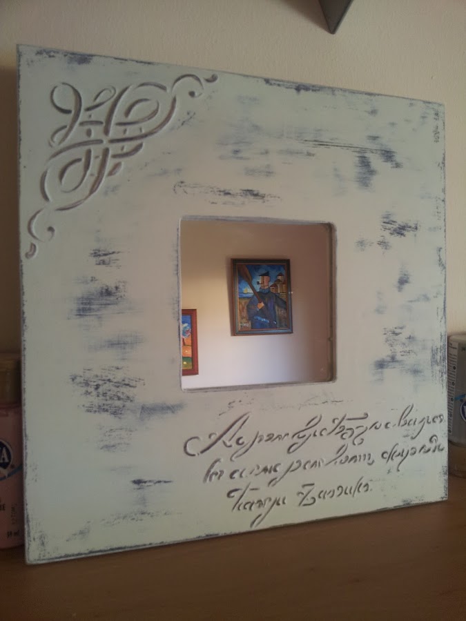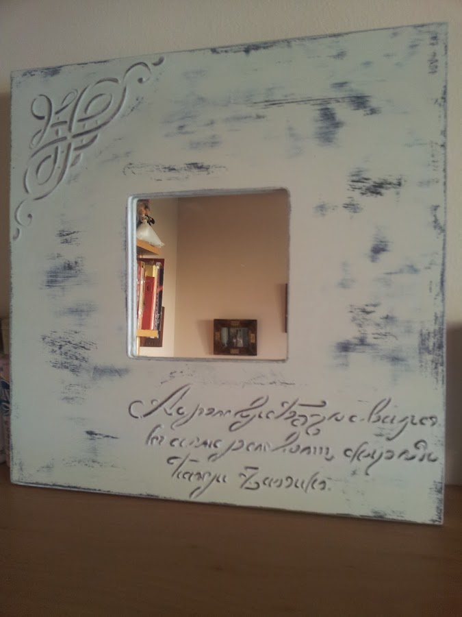 Este nuevo trabajo es muy sencillito y barato . He utilizado un espejito del Ikea muy barato (1,99) ,una plantilla de Stencil de Dayka , pasta de estuco y como base una técnica que me encanta ( de la vela ) porque le da un aire muy Vintage con efecto decapado.