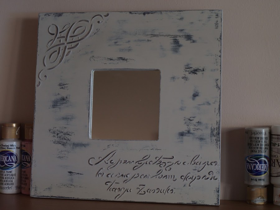 Este nuevo trabajo es muy sencillito y barato . He utilizado un espejito del Ikea muy barato (1,99) ,una plantilla de Stencil de Dayka , pasta de estuco y como base una técnica que me encanta ( de la vela ) porque le da un aire muy Vintage con efecto decapado.