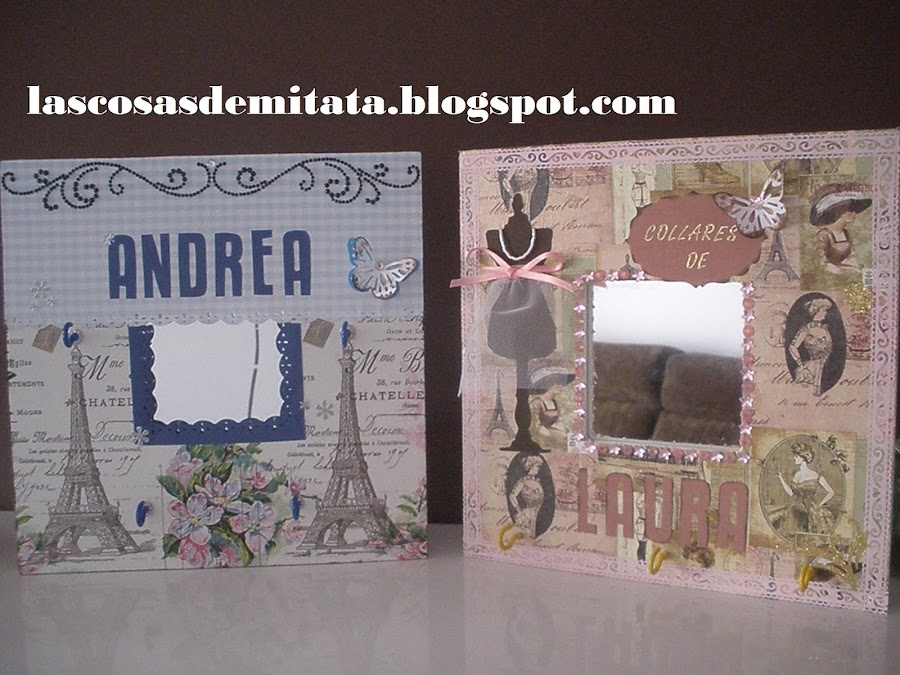 Hoy os subo un encargo que Andrea me ha hecho para ella y su hermana Laura, se trata de dos malmas decorados para colgar los collares. Como algunas me habéis preguntado donde se enganchan los collares os he subido una foto con algunos puesto,s para que lo veáis más claro.