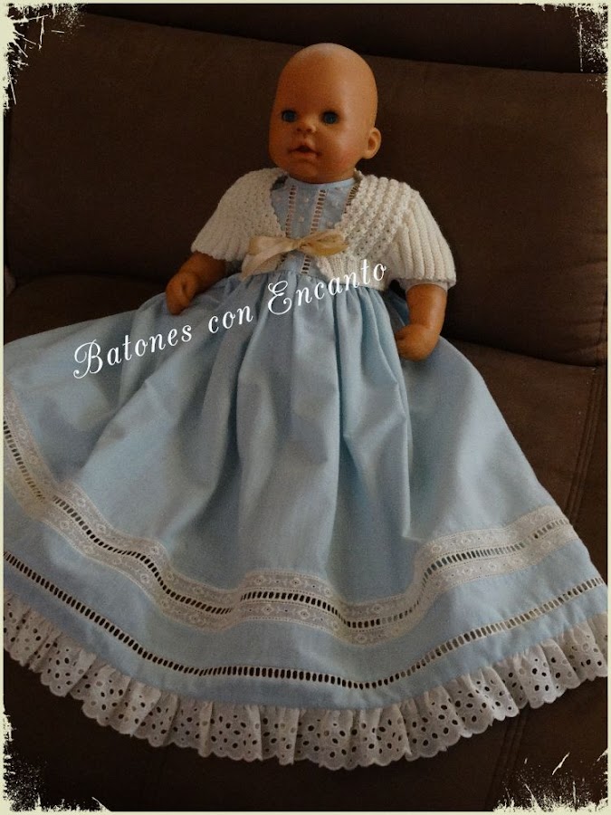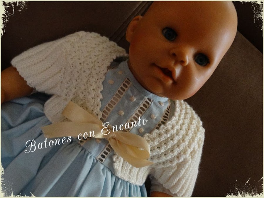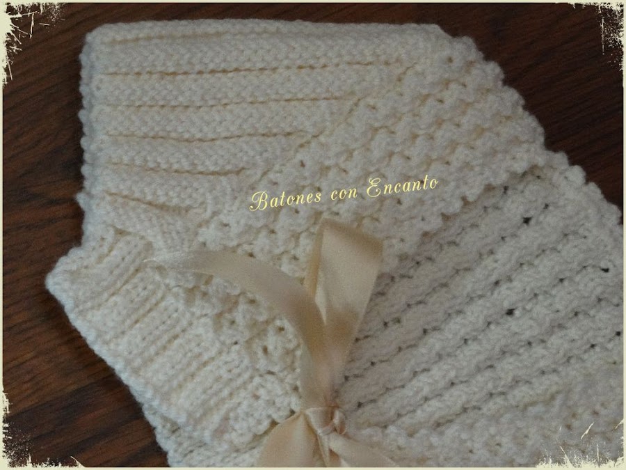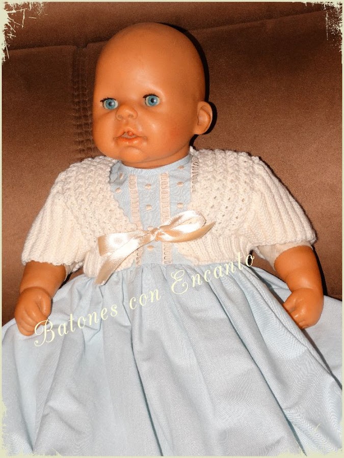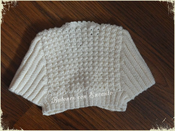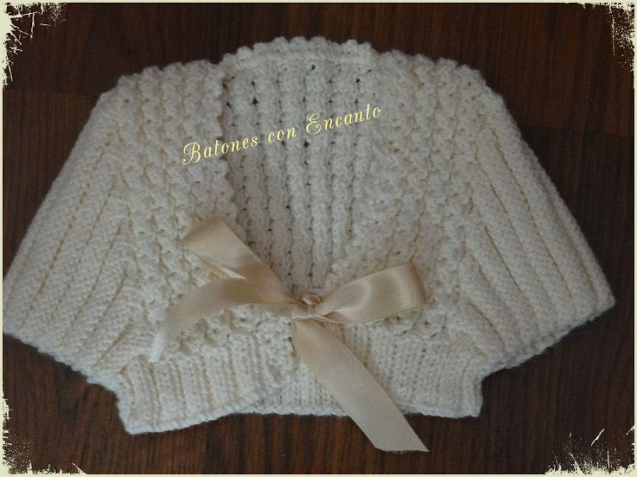 Hoy os enseño uno de ellos y es esta preciosa mañanita tejida con agujas del 2,50 en un color beige de Katia.