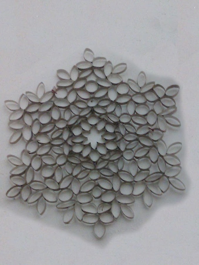 Al no disponer de rollos del mismo diámetro a medida que se iba haciendo de mayor tamaño, también iba perdiendo la simetría, de modo que a falta de pintarla doy la estructura por terminada.