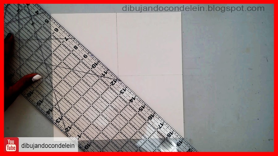 Comenzamos por trazar una linea horizontal y otra vertical justo por el centro del cuadrado, coo se muestra en la imagen