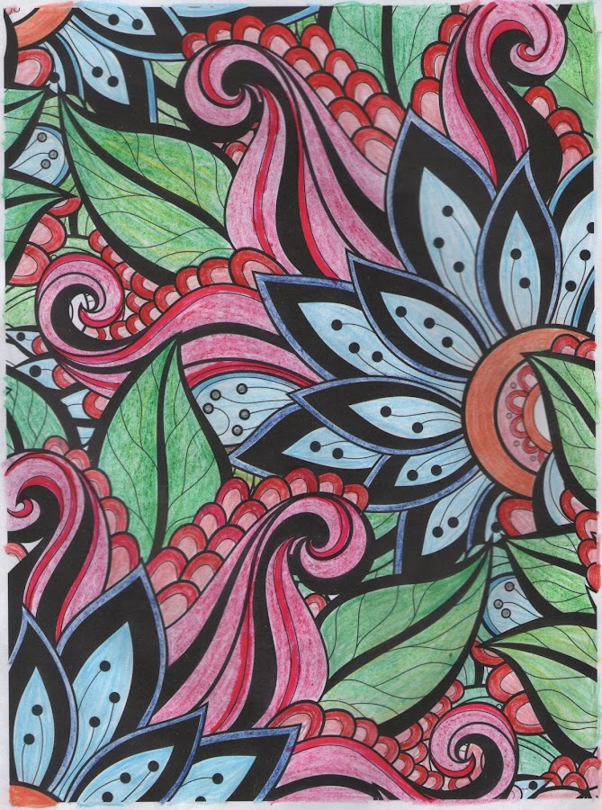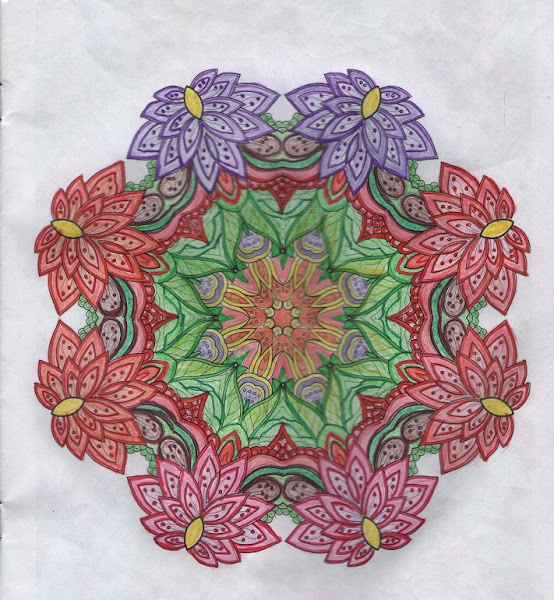 Hoy les traigo lo que he estado pintando con lápices de colores. Una rama con hojas, creación mía. Un precioso paisaje de final de verano. Esta rosa en una taza, la empecé con acuarela, pero como el papel no ayudaba, terminé con lápices de colores. Una rosa multicolor, que aunque les parezca que es artificial, es copiada de una foto real. Una protea. Y esto es ...