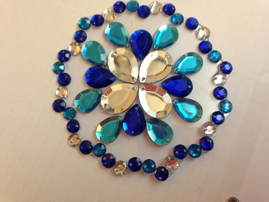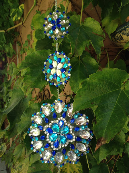 A diferencia de otros que hice, estos tienen pegadas piedras de ambas caras, entonces no es necesario ponerlos contra una ventana o pared sino que pueden girar libremente y al girar reflejan la luz del lugar en donde estén.