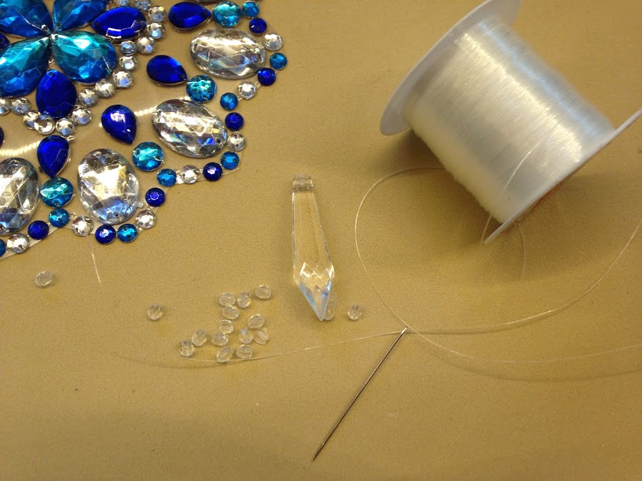 Una vez terminadas las tres piezas y secas se le hacen dos orificios en los extremos y se le pasa el hilo de nylon combinado con figuras de acrílico para darle belleza.