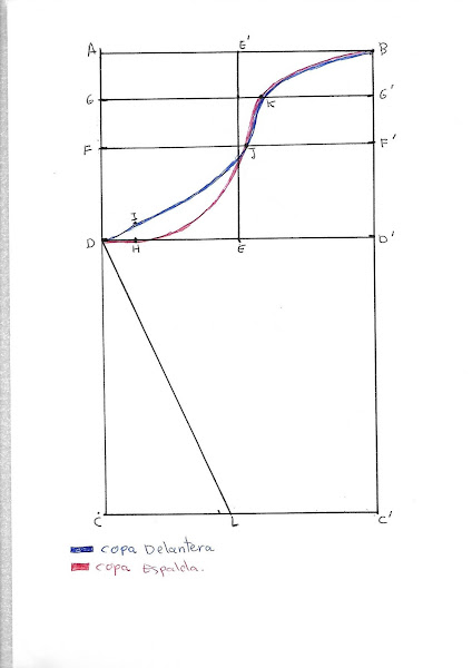 Ponemos la medida de 1/2 puño en la línea C-C´ lo llamamos Ly lo unimos con D.Ya tenemos la manga terminada.