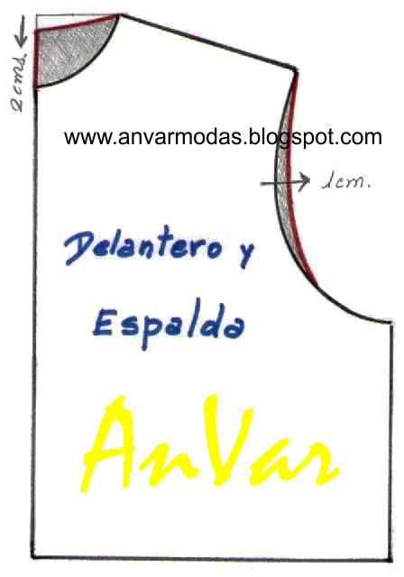 Luego, lo único que tenemos que hacer es modificar el cuello o escote y el cavado de la sisa para lograr en un sólo patrón contar con delantera y espalda.
