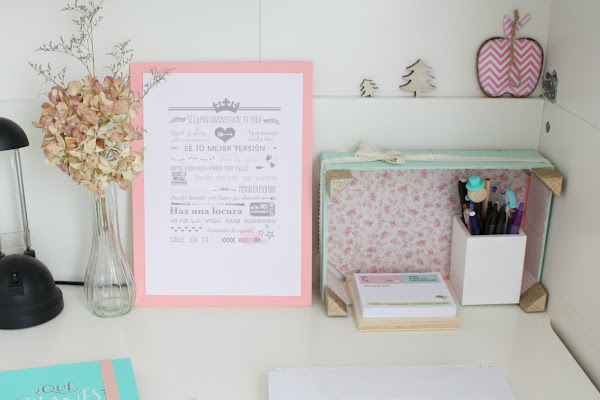Los he escrito en un folio, de forma artística, como no podía ser de otra manera, y luciendo en mi escritorio bien a la vista. Así, cuando las fuerzas me flaqueen, podré verlos y recordarme a mí misma los motivos por los que están ahí... Si tú también los quieres en el tuyo, solo tienes que pinchar aquí y descargarte el manifiesto de forma gratuita, está listo para imprimir y lucir.