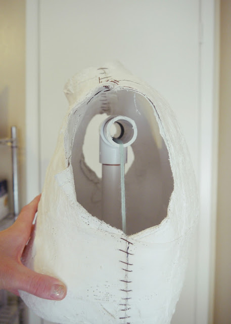 Hacer un soporte con caños de PVC donde se apoyara el maniqui desde los hombros.