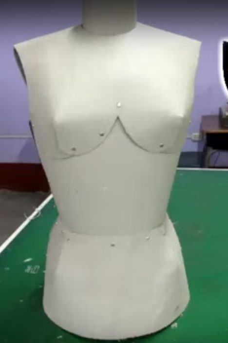 En la imagen siguiente el maniqui con carton paspartout esta sujeto con ganchos mariposa. De usar este metodo recordar dejar margenes a las piezas que montan, ya que se ensamblaran unas sobre otras. Lo mismo aplica en las pinzas.