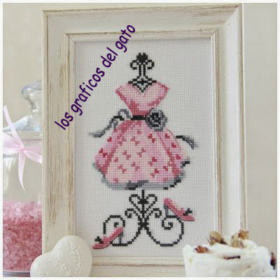 Precioso gráfico de un maniquí con un vestido rosa...