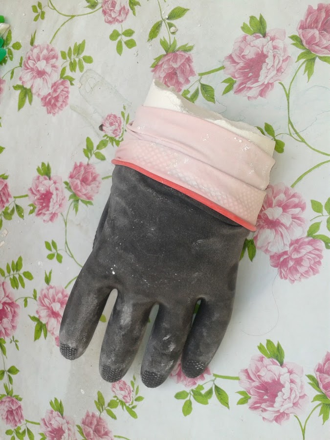 Para realizarla, solo debes introducir un poco de yeso dentro de un guante de goma hasta rellenar por completo todos sus huecos.