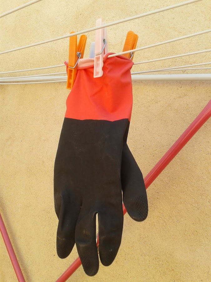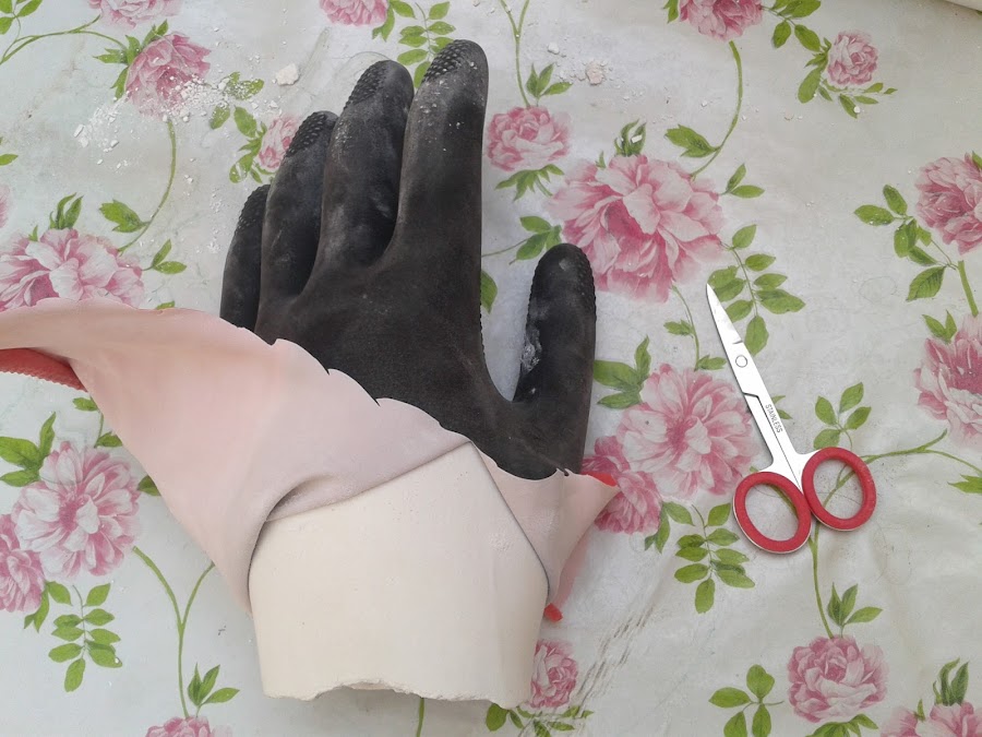 Despacito quitamos el guante, si vemos que esta difícil abrir el guante con una tijeras para que no se os partan los dedos.