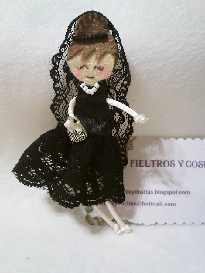 Esta Manola de Fieltro está preparada para lucirse en la procesión de las Palmas del Domingo de Ramos de Elche, va vestida con sus mejores galas y su mejor bolso para verse lo más guapa posible...
