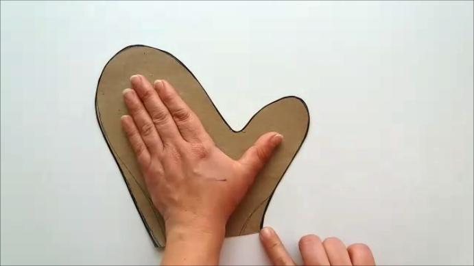 De este molde sacaremos otro igual al que dibujaremos un par de líneas para separar las zonas de los dedos. Y recortamos.