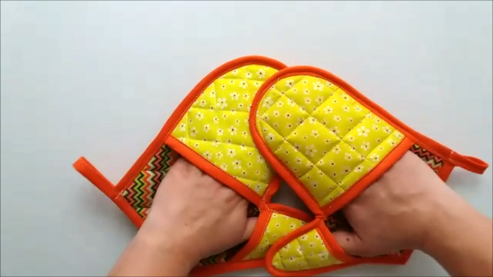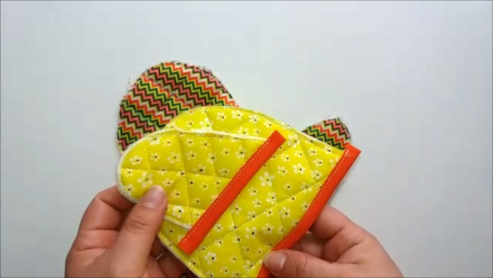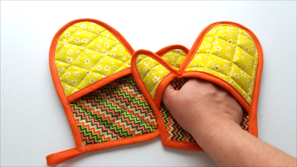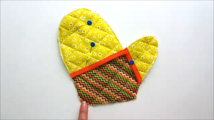Y como vamos a hacer un par de manoplas, debemos colocar las piezas en posición tomando en cuenta cuál va a ser la mano derecha y cual la mano izquierda.