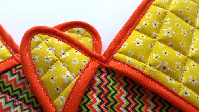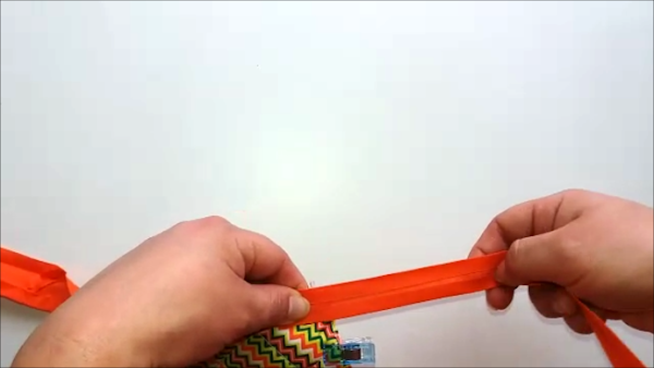 Terminamos de coser el bies procurando que la costura quede igual por ambos lados,