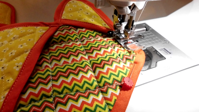 Ahora, utilizando las marcas diagonales que hemos hecho como guía, cosemos para hacer el acolchado, nos van a quedar de ésta forma: