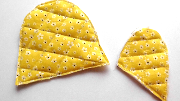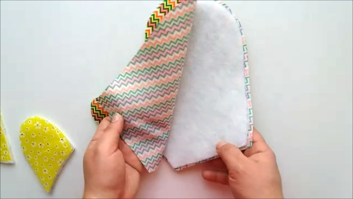 Como mi guata es termoadhesiva, primero la pegaré con la plancha; de lo contrario podemos coserlas colocando pieza de tela, la guata y encima la otra pieza de tela, y unimos con una puntadita bien pegadita al borde.