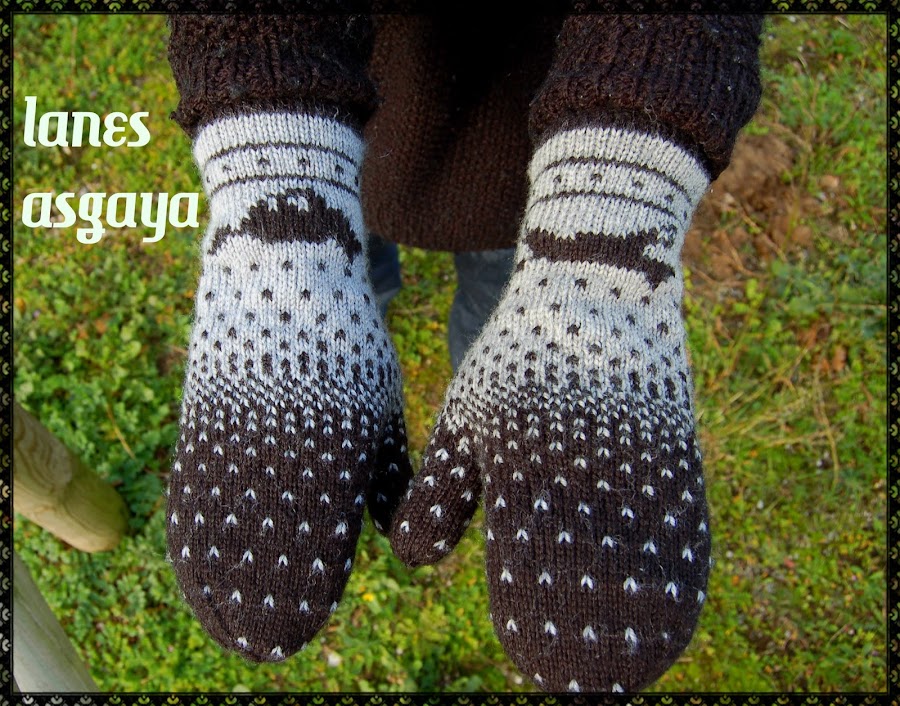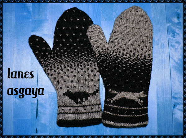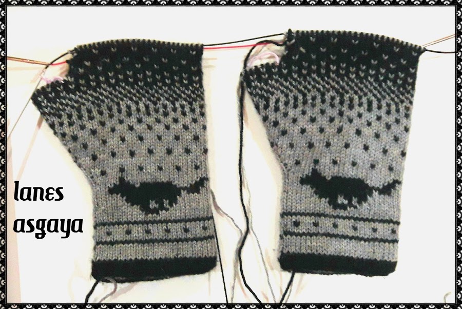Además, como sabía que me iba a dar pereza hacer la segunda manopla después de terminada la primera, pues hice las 2 a la vez (que en realidad, son 4 guantes a la vez), con 2 agujas circulares, como los calcetines, que es la forma más rápida de tejerlo (aunque hay que tener en cuenta que trabajas con 4 ovillos y a veces eso complica un poco las cosas...)