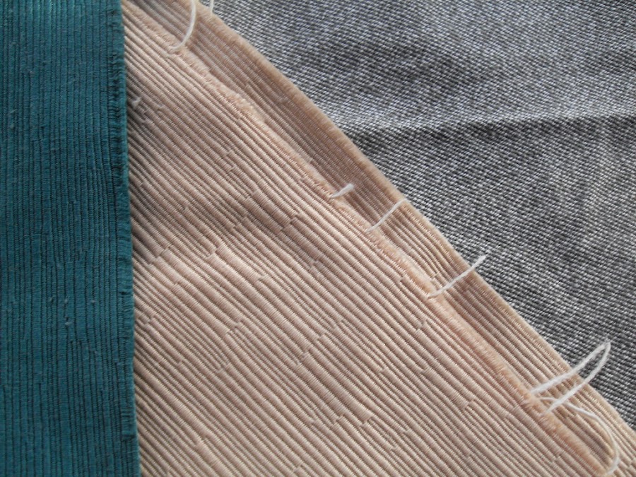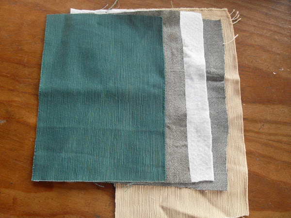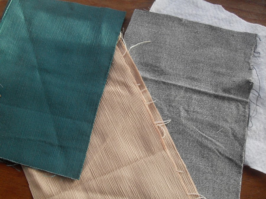 - Trozos de telas viejas, el tamaño depende de lo grande o pequeño que queramos realizar la manopla. Preferiblemente las telas han de ser gruesitas, y colocar varias. En mi caso puse 4 trozos del mismo tamaño.