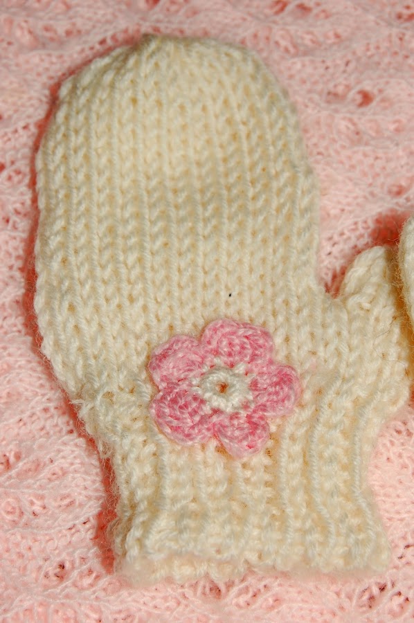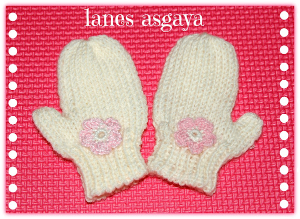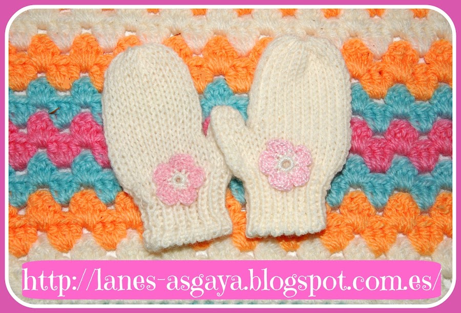 Las vi en el blog de Rosa María Merino la etiqueta de lana, una absoluta maestra en ropa de bebé. Por si no la conocéis, os cuento que tiene un blog de tutoriales fantástico sobre ropa muy clásica de bebé. Allí vi estas manoplas y las hice, pero cuando volví para enlazar el tutorial, descubrí que la pobre había tenido una mala experiencia (no era la primera) y decidió quitar la mayoría de los patrones gratuitos que tenía en el blog y ponerlos a la venta.