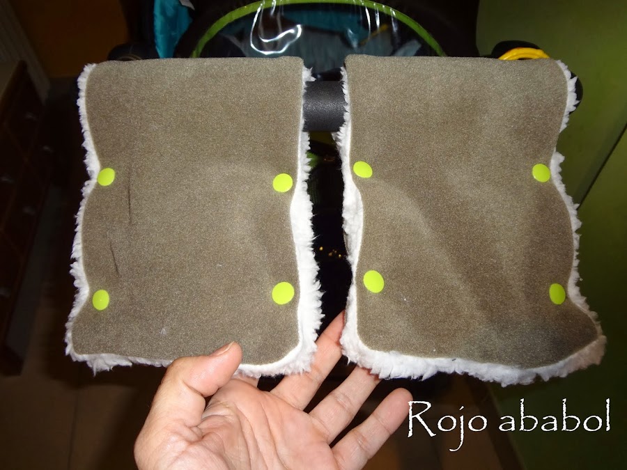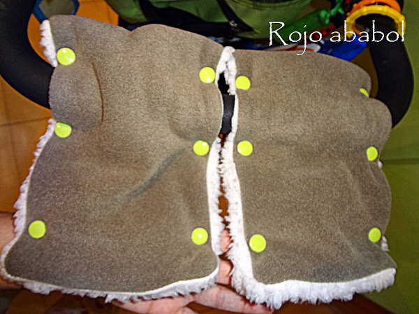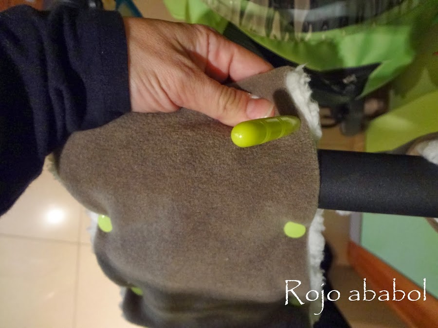 Colocamos los snaps y ya tenemos terminados nuestros calienta-manos para el cochecito!