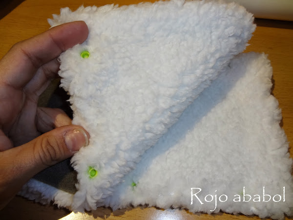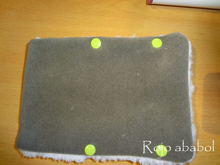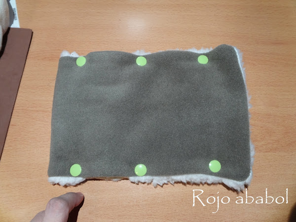 Ya tenemos la base para nuestros calienta manos. Ahora nos toca poner los snaps. Marcamos dónde los vamos a colocar. Primero en un lado y luego pasamos al otro.