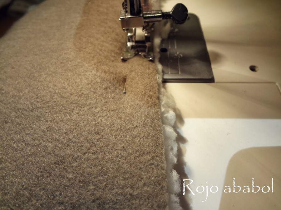 Cosemos todo alrededor dejando un hueco en uno de los lados cortos para luego dar la vuelta. He usado puntada zigzag corta como la que os enseñé en el tutorial de los patucos.
