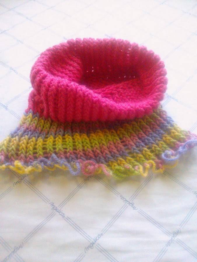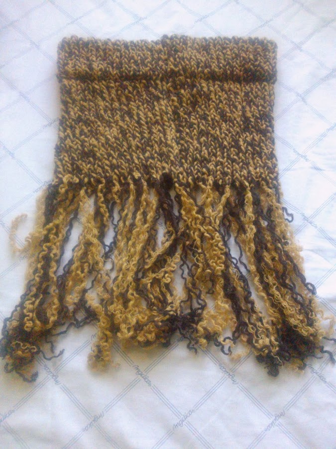 Ella teje desde hace más de 30 años, pero por el trabajo, no podía dedicarle el tiempo que a ella le hubiera gustado, así que ahora aprovecha todo lo posible y está asistiendo una vez a la semana a reuniones con más tejedoras. Entre ellas se van enseñando las unas a las otras y, además, tienen a un monitor chico, y joven, me cuenta. En realidad está haciendo realidad el sueño de toda araña (así llamo yo a las que nos posamos cada minuto que podemos entre hilos, lanas y agujas).