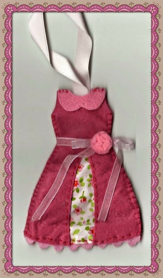 Hace broches, coleteros, chupeteros, pendientes, colgantes, carteles, adornos para el árbol de Navidad, coronas de cumpleaños. Colgantes perfumadores para el armario o un rincón tan bonito y original como este vestido.