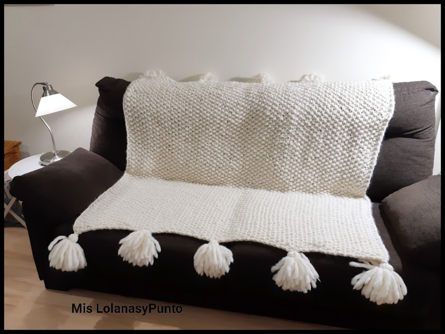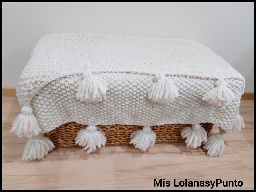 Para decorarla y darle mi toque personal, le he puesto borlas en dos lados de la manta. Ya ha quedado así de bonita!.