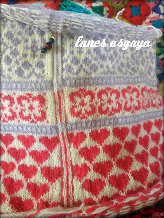 Este patrón tiene la particularidad de que se teje en redondo (sí, en circular es más cómodo tejer el jacquard y queda mejor) y después se corta. Pero si a alguna le gusta la mantina y lo de cortar no se atreve, pues se puede hacer perfectamente en recto.
