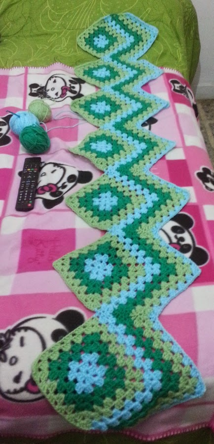 Esta hermosa mañana de lunes les quiero contar todo lo que estoy haciendo, son varios proyectos: estoy con un par de mantelitos a crochet que me encargaron, estoy planeando la fieta de cumpleaños de Ser (el primer cumpleaños suyo que pasamos juntos :3 quiero q sea realmente linda y el tema de la fiesta es "videojuegos" así q estoy ideando diferentes cosas porque no es una fiesta de niños), estoy con lo de las tiendas en face y ahora me enganché con la Manta/Cobija que viene en la revista Tejido Práctico Crochet Mantas, pero le hice un par de modificaciones al patrón y ahora es mucho más simple de recordar conforme voy tejiendo.
