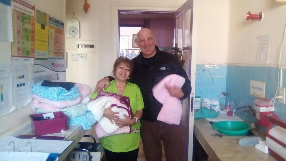 Ya en Bariloche, las mantas fueron entregadas a las Damas Rosadas del Hospital Ramón Carrillo por otro amigo, Gonzalo Osores Soler, para abrigar a los bebés. Por suerte entregamos todo antes de que empezaran las nevadas que cayeron sobre todo el lugar.